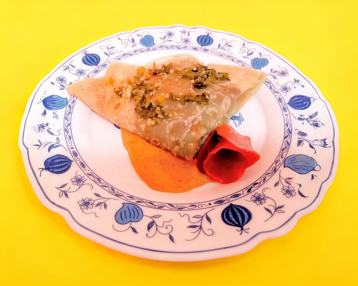 1 pieza de CREPA SALDA, INCLUYE QUESO, PIMIENTO MORRON, CEBOLLA, CHAMPIÑONES Y 1 CARNE FRIA A SELCCIONAR. PARA LA MASA USAMOS MASA PARA CREPAS, OLVIDATE DE COMER UNA CREPA SALADA CON SABOR A HOT CAKES.