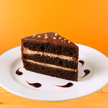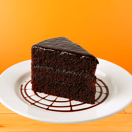 Rebanada de pastel de chocolate esponjoso y húmedo, con intenso sabor a cacao.
