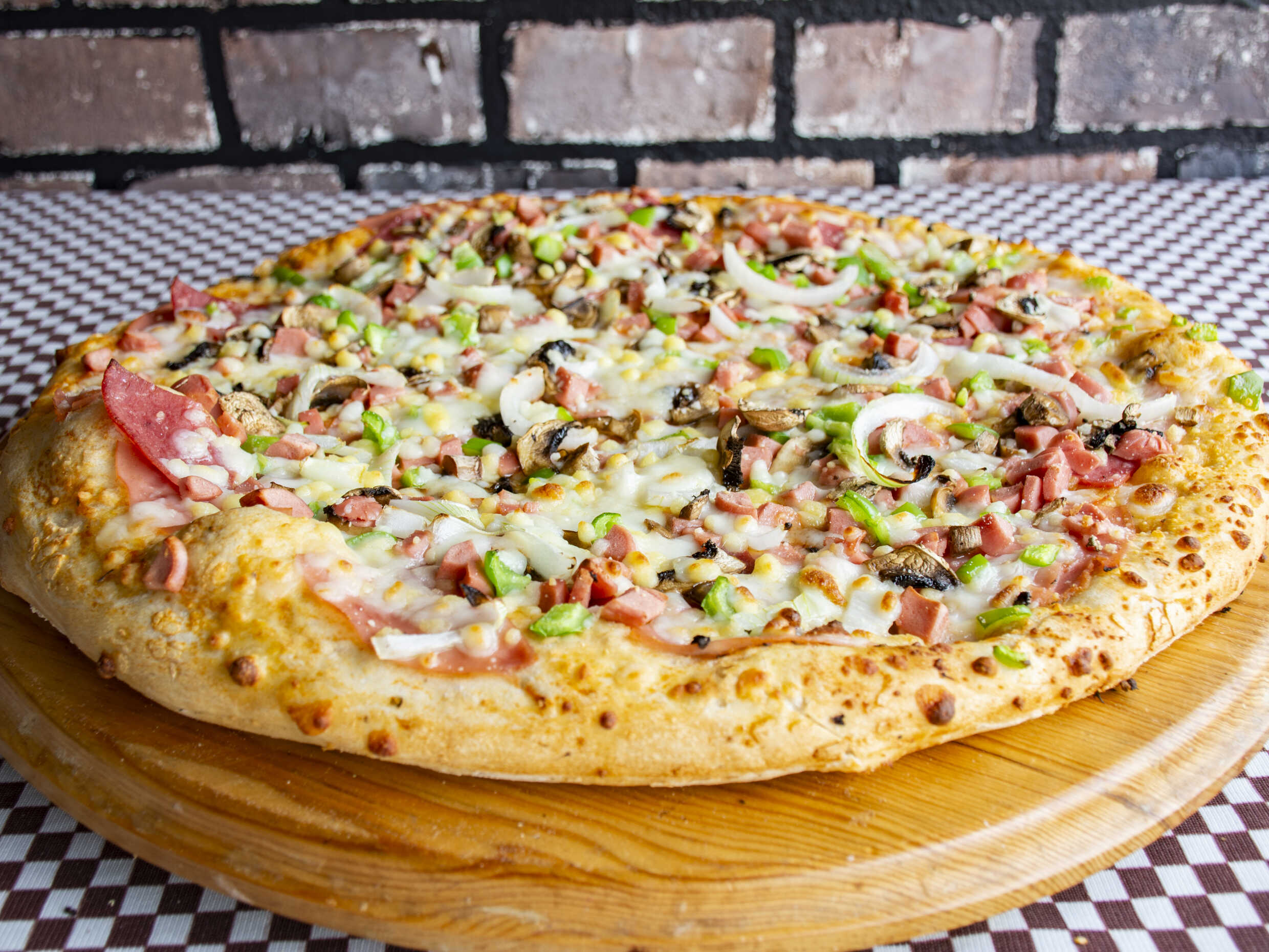 La combinación perfecta en una sola pizza. Tercio de hawaiana con el toque dulce de la piña y el jamón, un tercio de pepperoni con su sabor intenso y crujiente, y otro tercio de champiñones con morrón frescos y jugosos. Ideal para compartir y consentir todos los antojos en una sola orden.