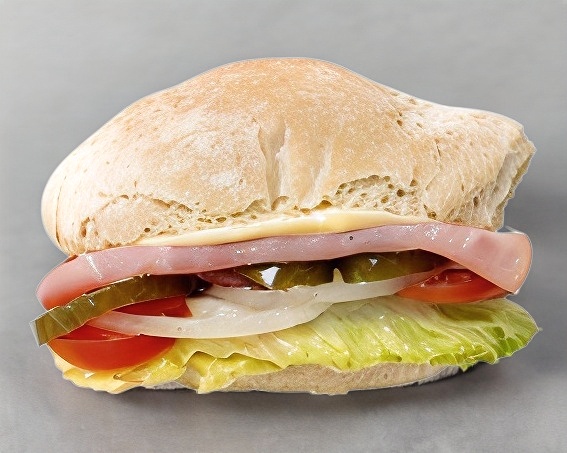 Incluye bolillo, mayonesa, mostaza, jitomate, porción de aguacate y rebanada de queso amarillo.