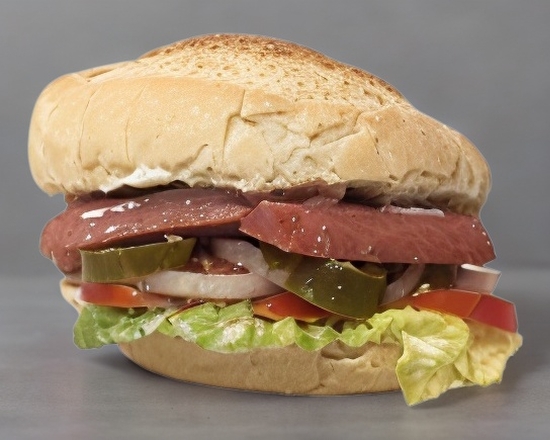 Bolillo, salchicha de pavo, cebolla, jitomate, lechuga, mayonesa, chiles jalapeño.