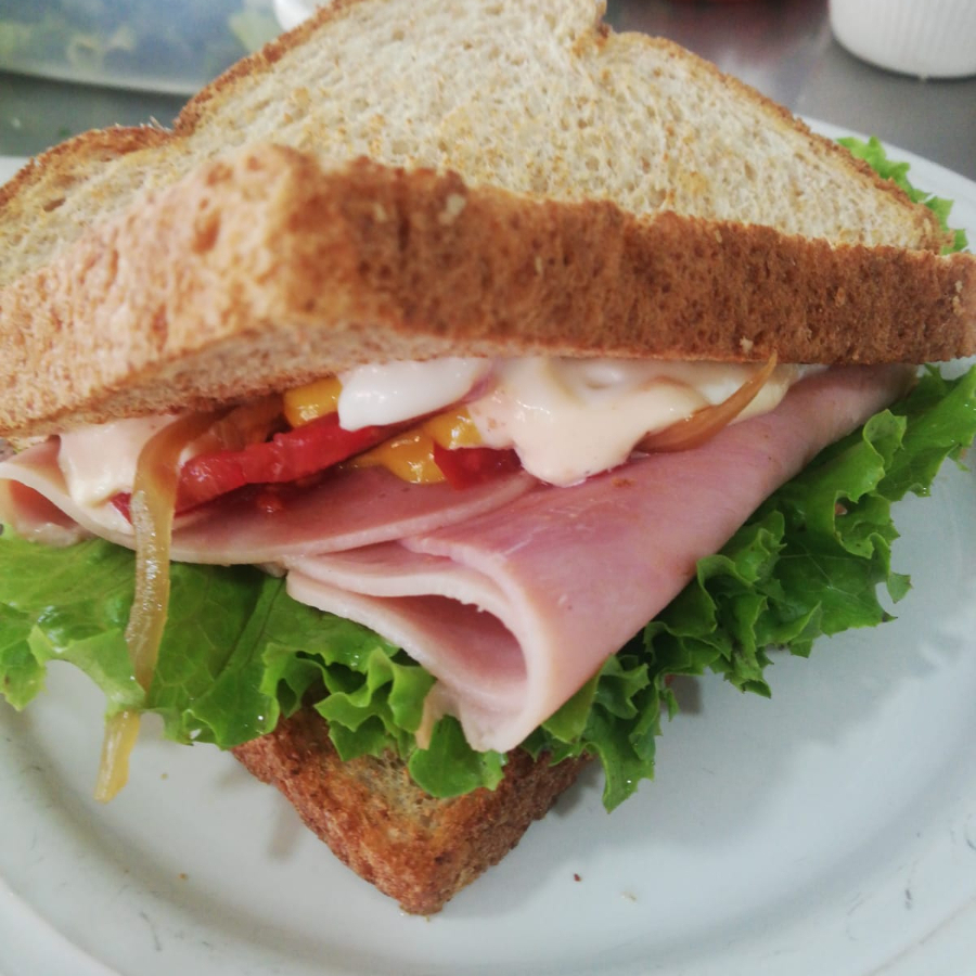 Champiñones, espinaca, jamón, queso panela con guarnición de frijoles.
