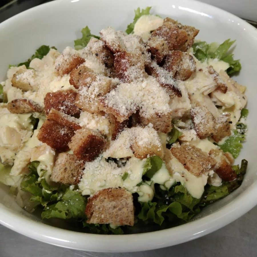 Espinaca, pepino, pollo y aderezo de cilantro.