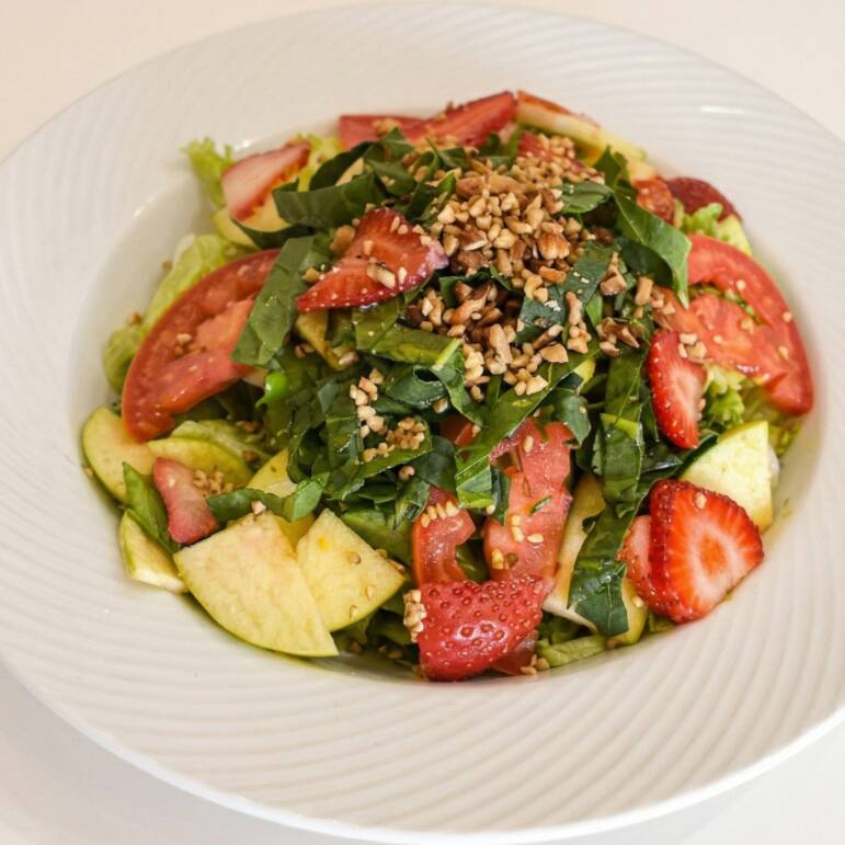 Espinaca, pepino, queso panela, aguacate y aderezo de cilantro.