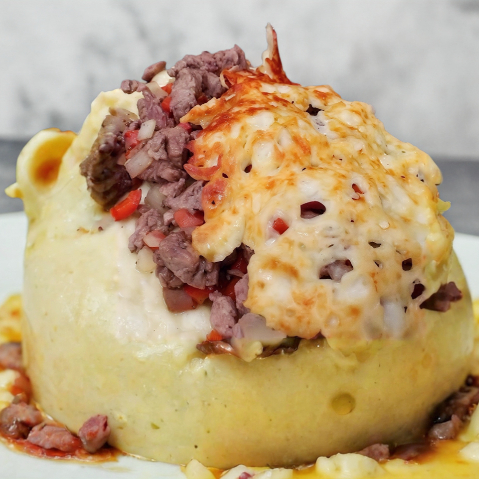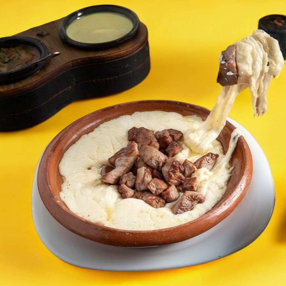 queso fundido con carne tortillas salsa frijoles cebolla y papas cambray