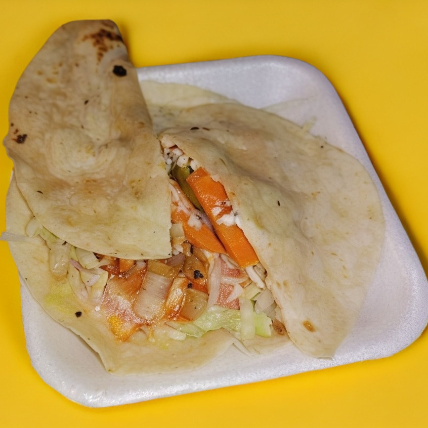 En 2 tortillas de harina con jamón, queso blanco asadero y queso amarillo rebanado, acompañado de lechuga, jitomate, cebolla, chile jalapeño, cátsup, crema y chimichurri.