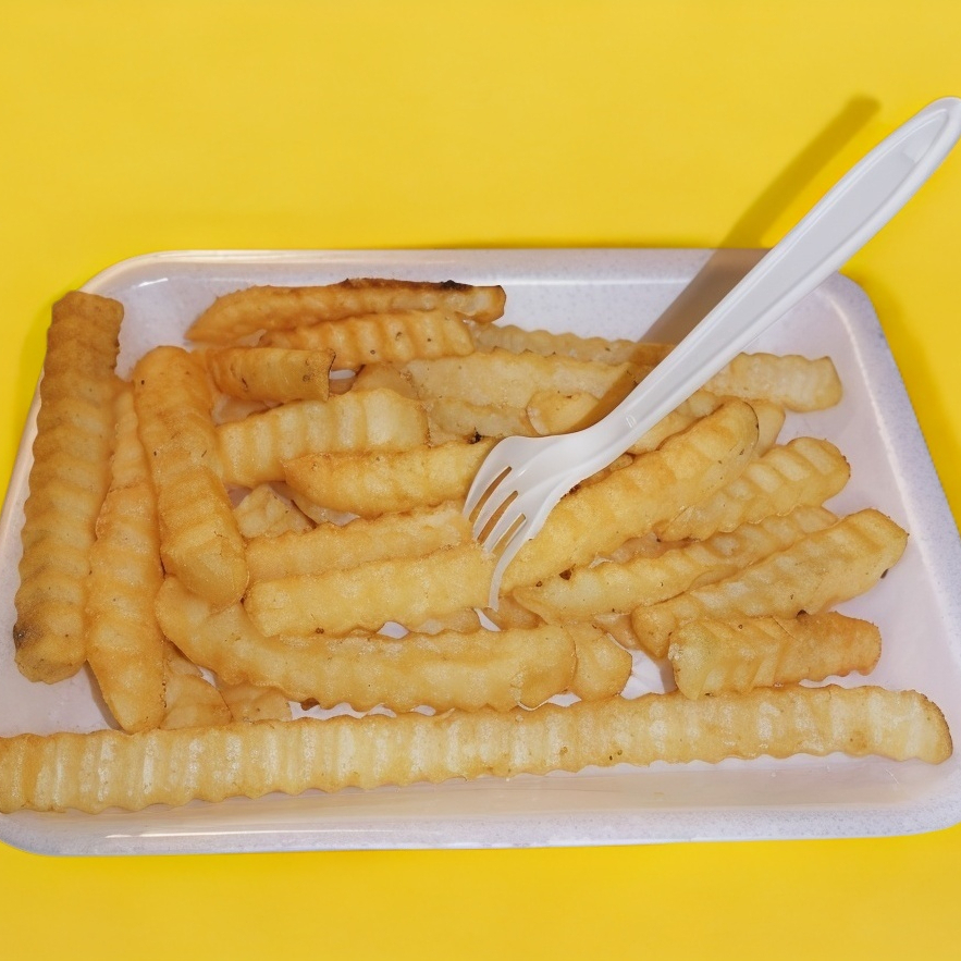 Orden de papas en plató chico de corte ondulado aderezadas con sal de ajo.