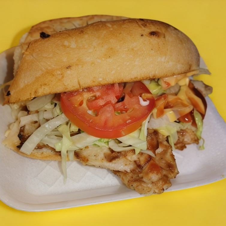 Milanesa empanizada de cerdo en pan bolillo especial de la casa, aguacate, lechuga, jitomate, cebolla, chile jalapeño, crema, cátsup y chimichurri. Se envia en una pieza