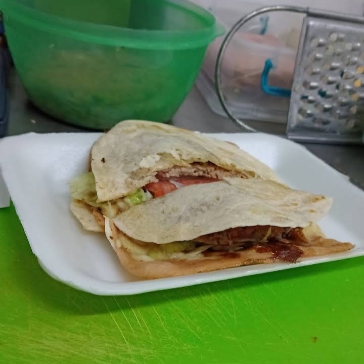 2 tortillas de arina ,cebolla jalapeños ,lechuga ,queso blanco y amarillo jamon h aderezos