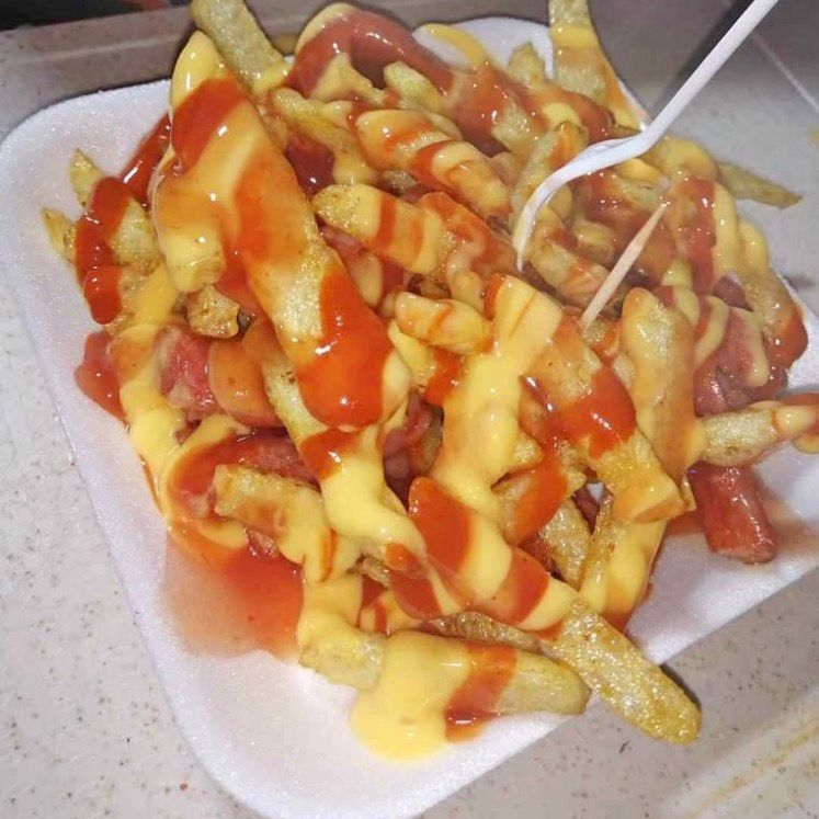 Carne ,cebolla ,jitomate ,jalapeños queso amarillo papas ala frances