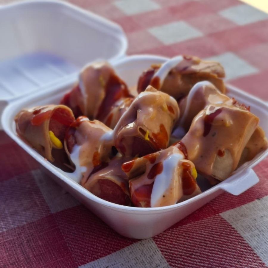 Salchicha envuelta con una tortilla de maíz y todo va a la freidora