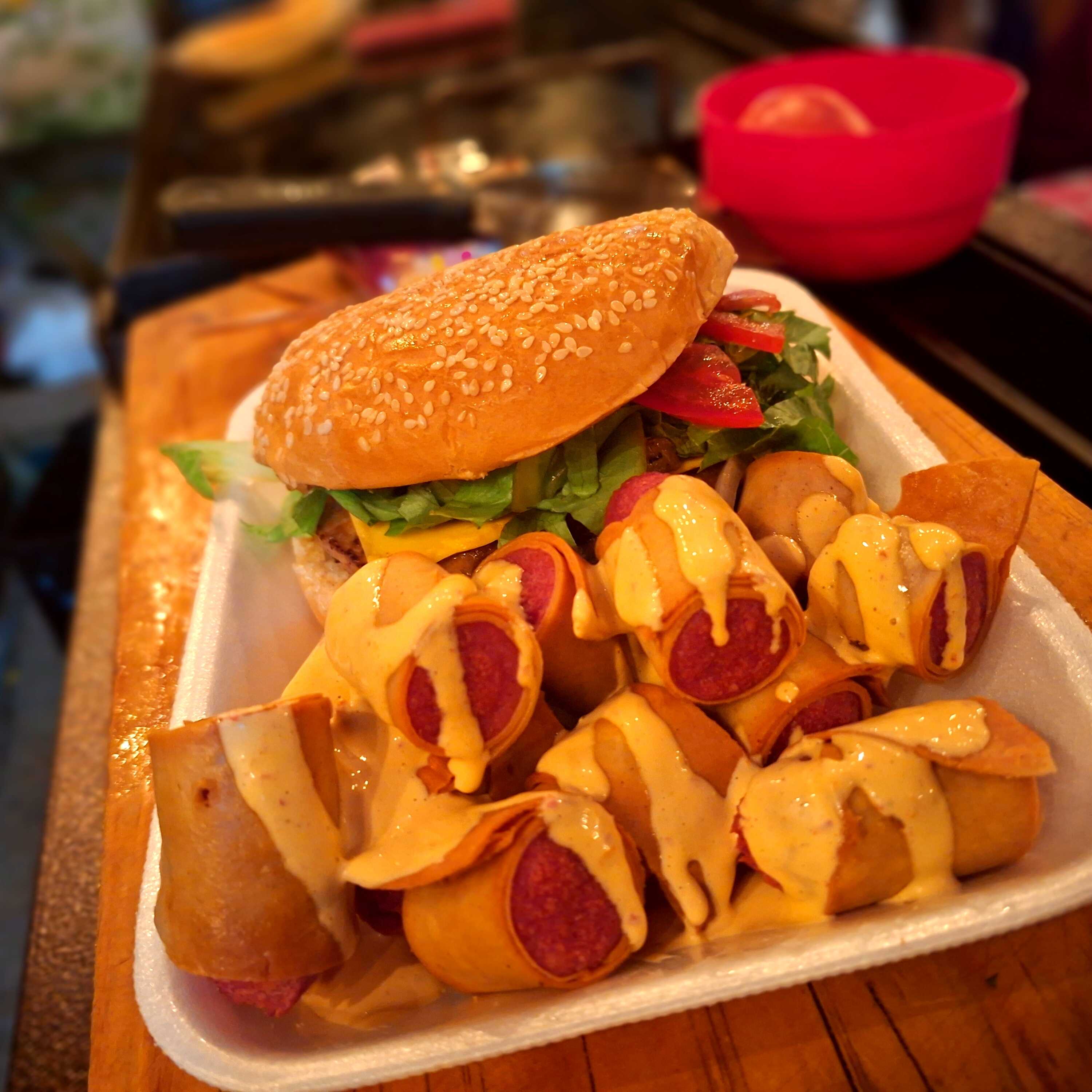 HAMRGUESA RUSA, SALCHITACOS Y COCA 600