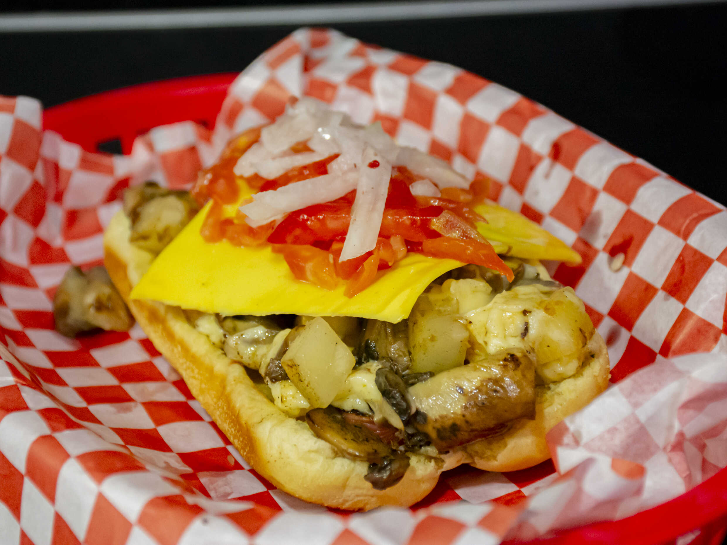 Elaborado con pan de ajonjolí, salchicha y media de pavo, queso americano y blanco, arrachera y vegetales de productores regionales.