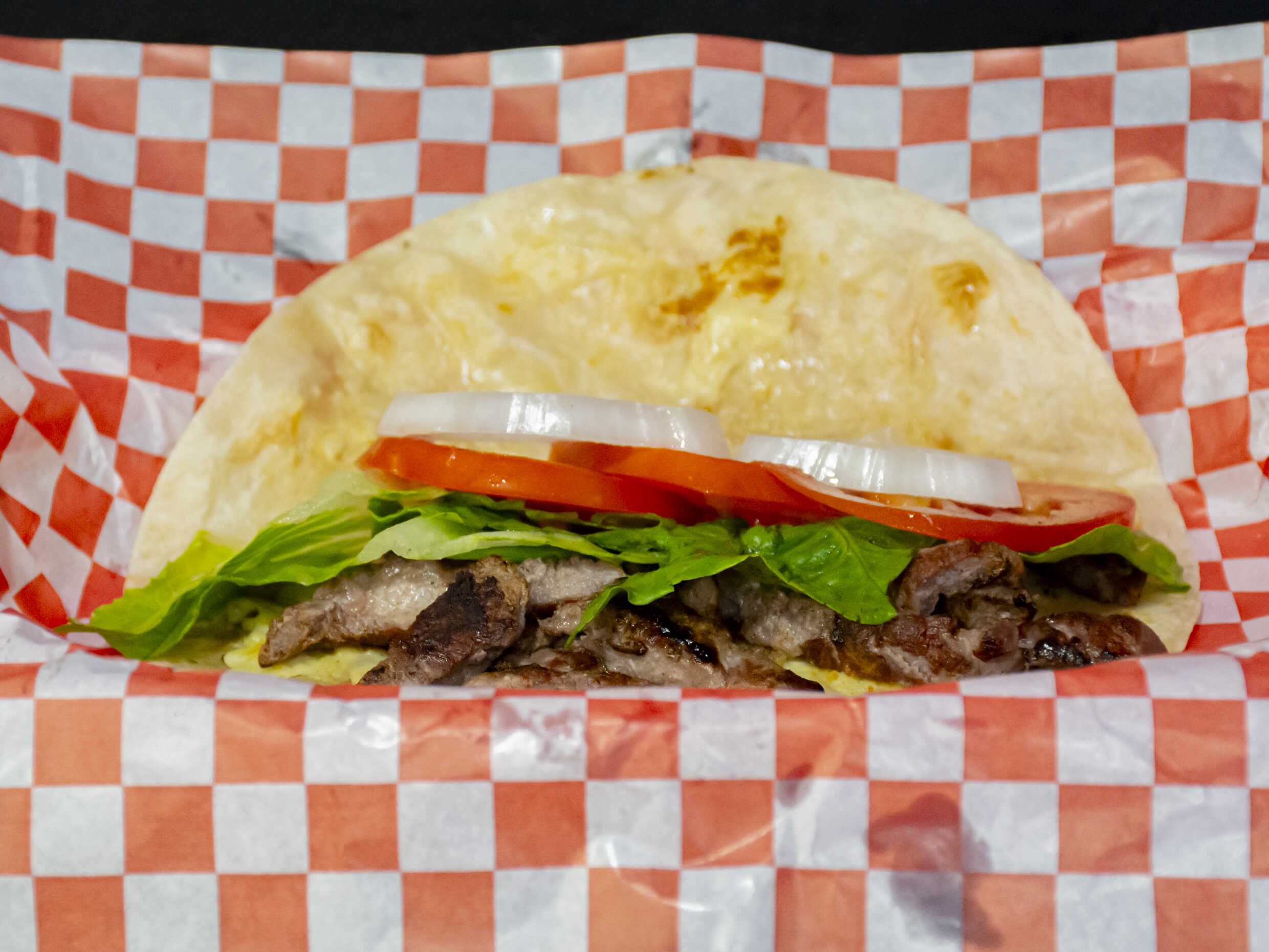 Elaborado con tortilla de harina, arrachera, queso blanco y vegetales de productores de la región.