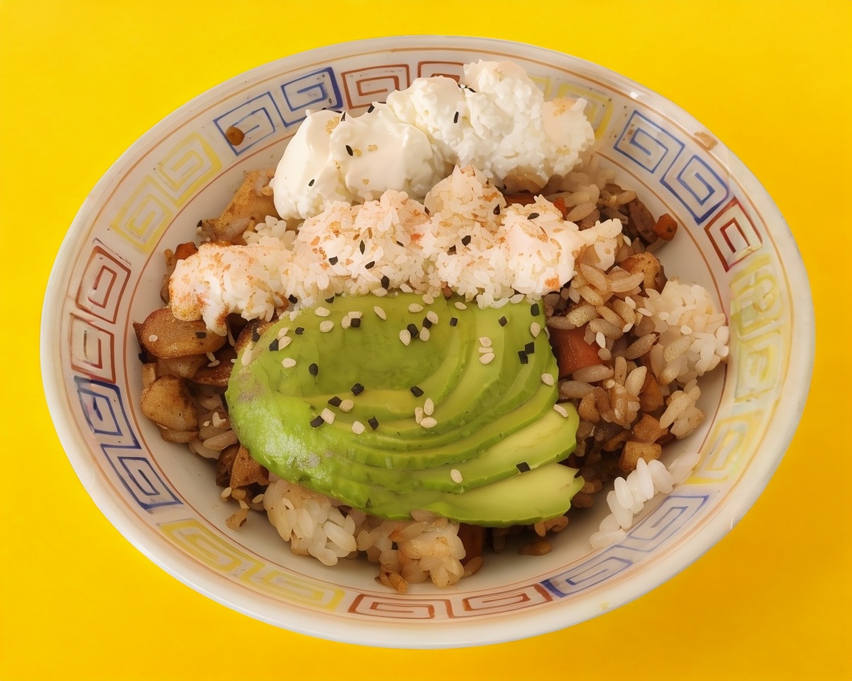 Bola de arroz empanizada, rellena de pepino, aguacate, queso crema y proteína a elegir.