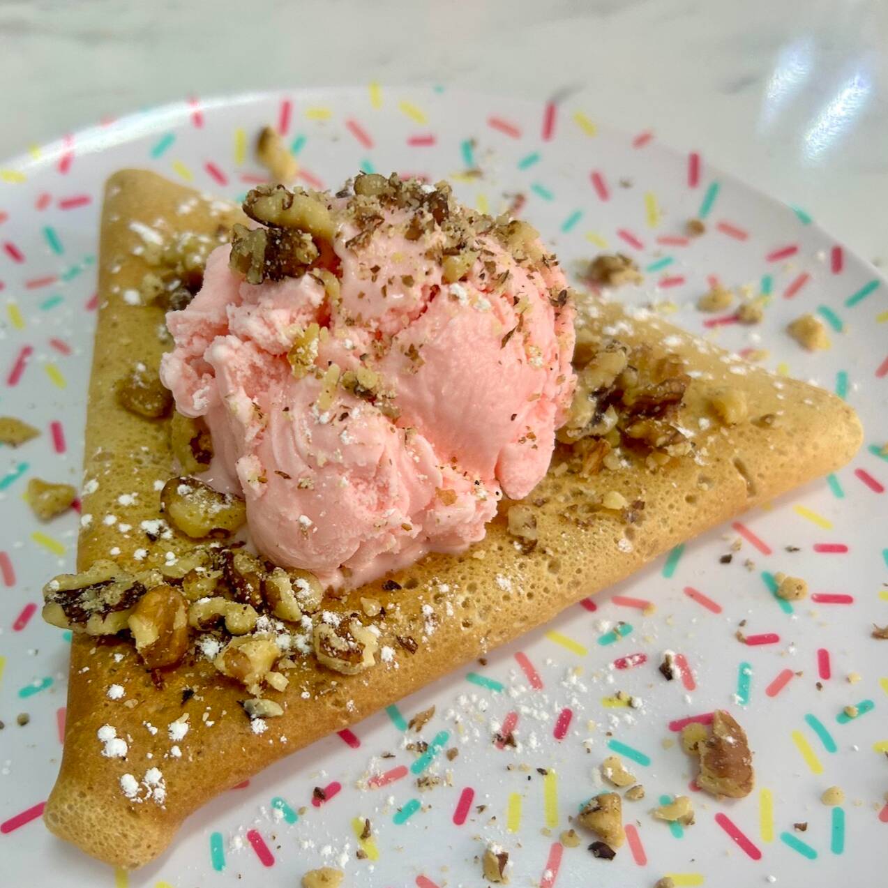 Crepa 30 cm en triangulo de 3 ingredientes: 1 bola de helado, 1 base y 1 topping.