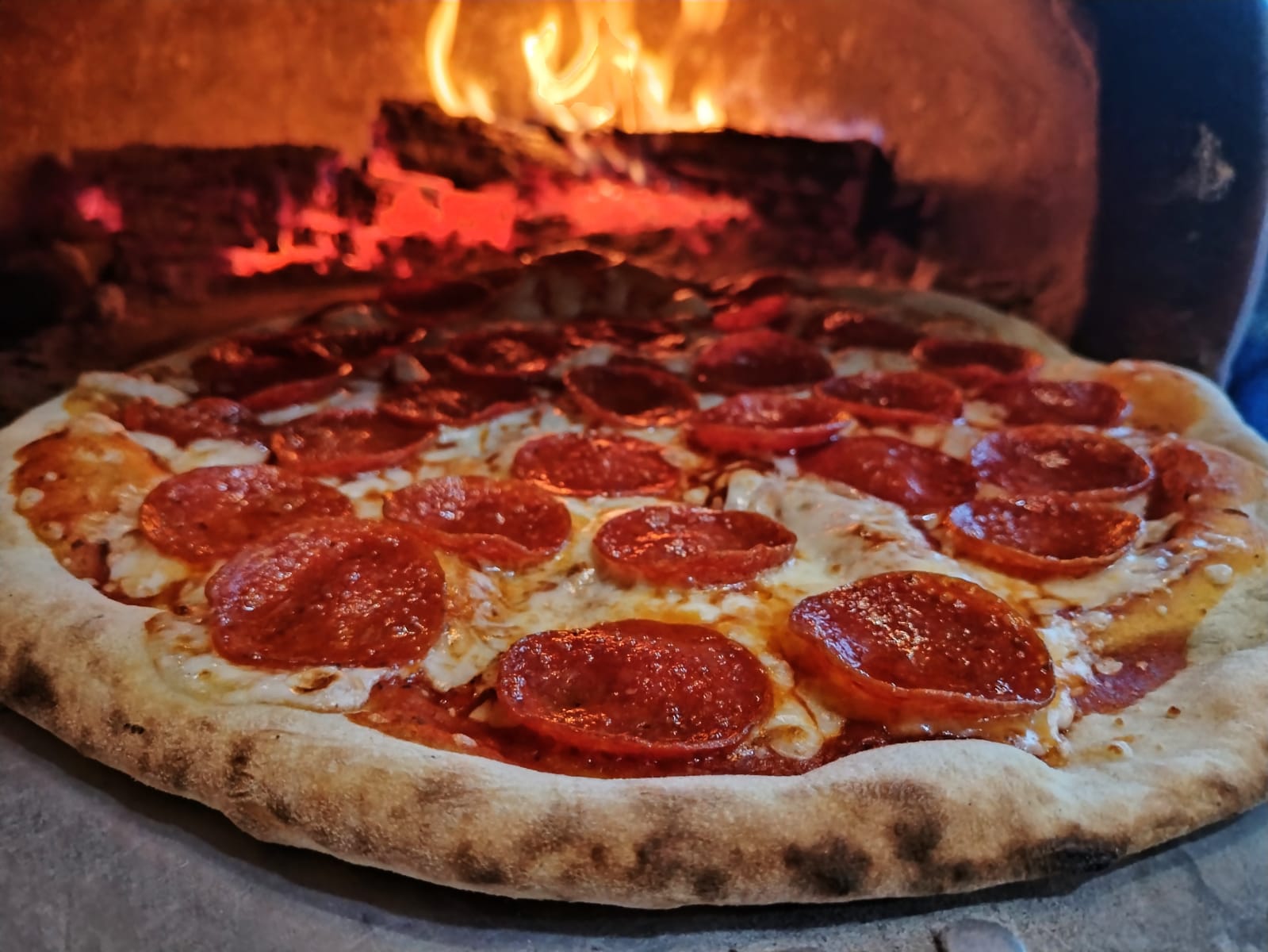 Pizza a la leña gde 35 cm. Con queso 100%asadero y pepperoni gourmet .