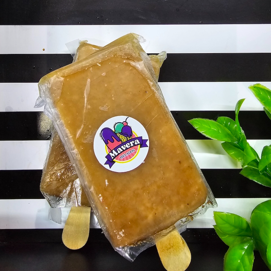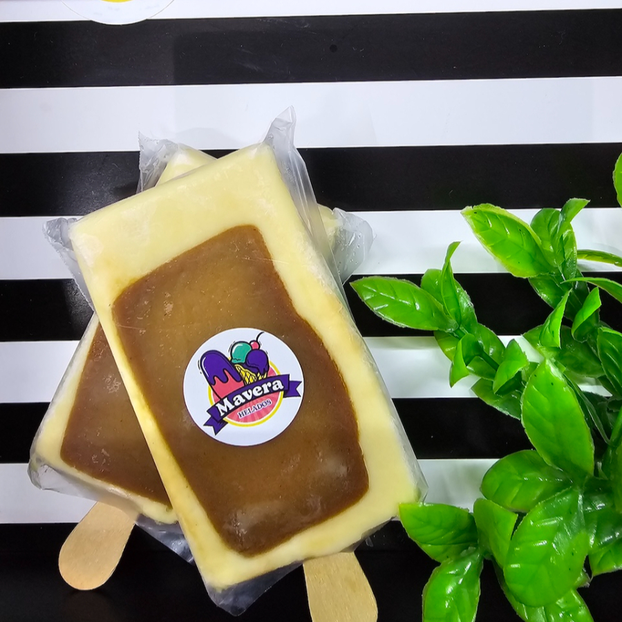 Paletas de leche de vainilla rellena de cajeta.