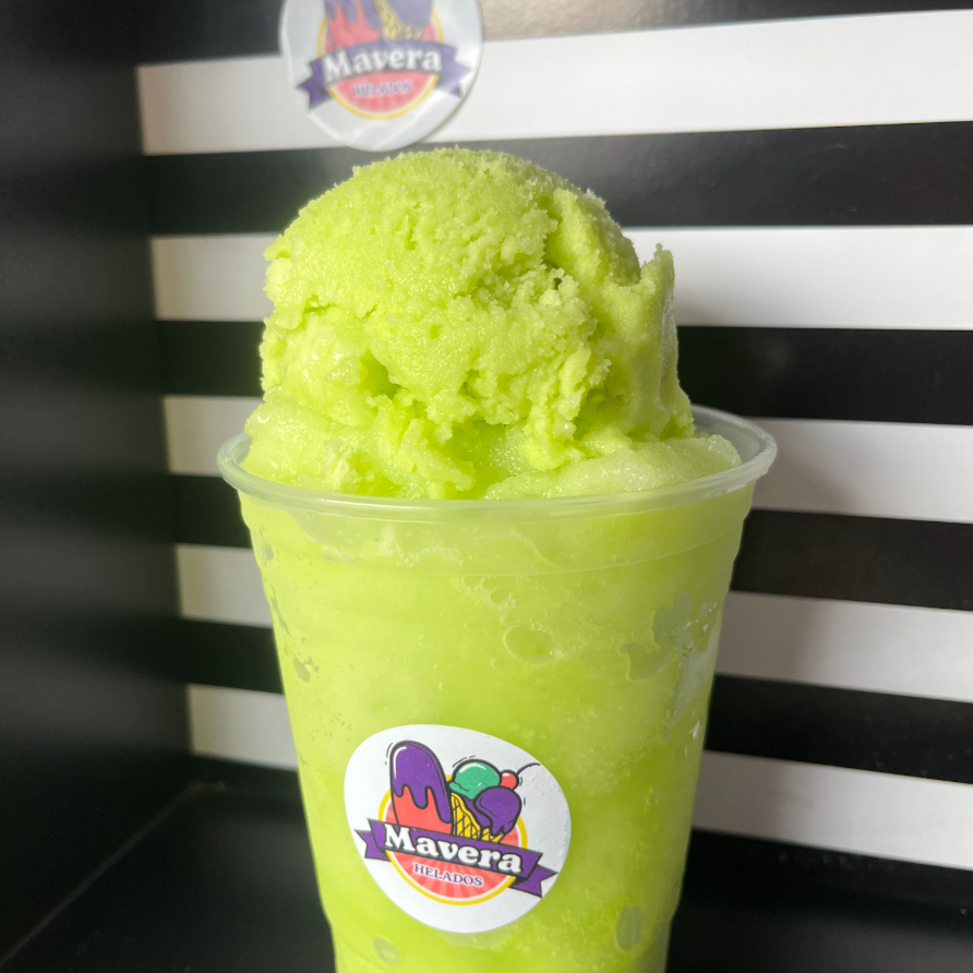 Smoothie con pulpa de mango con un toque de chamoy y gomitas