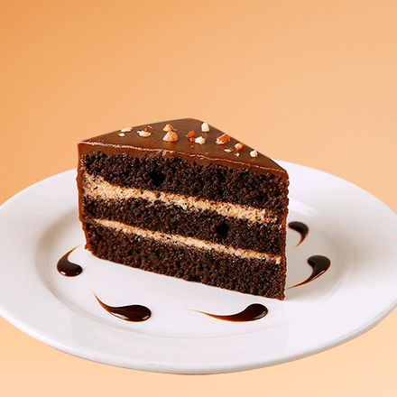 Rebanada de Pastel crocante de chocolate con capas crujientes y sabor intenso a cacao.