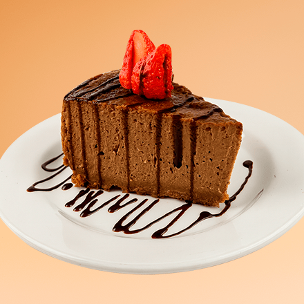 Rebanada de Cheesecake de chocolate cremoso con intenso sabor a cacao y base de galleta.