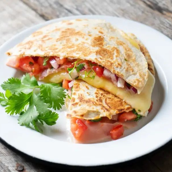 Tortilla de harina, jamón, queso blanco y amarillo.