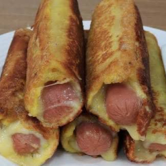 Salchicha cubierta de masa de pan y frita, servida en palito.
