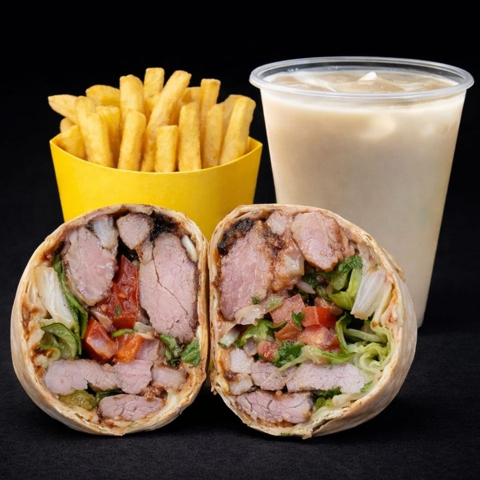 Burrito de Lomo de Cerdo*1 + Bebida*1 + ¿Algo más?*1