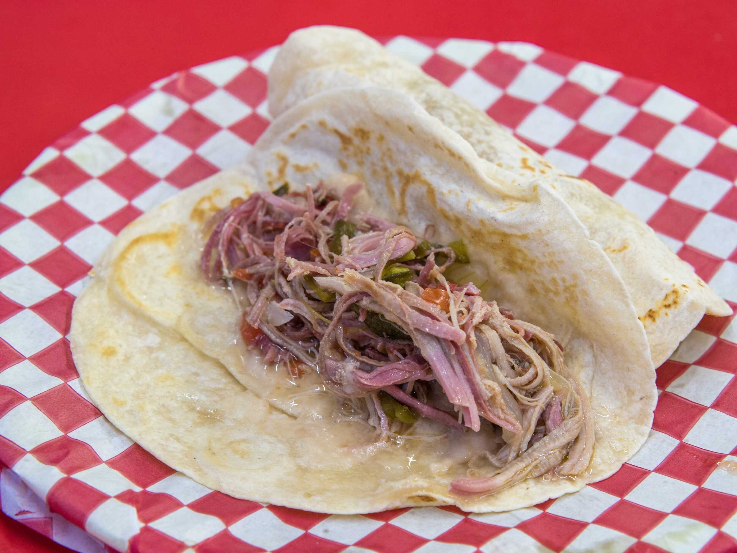 Burrito de chicharrón prensado.