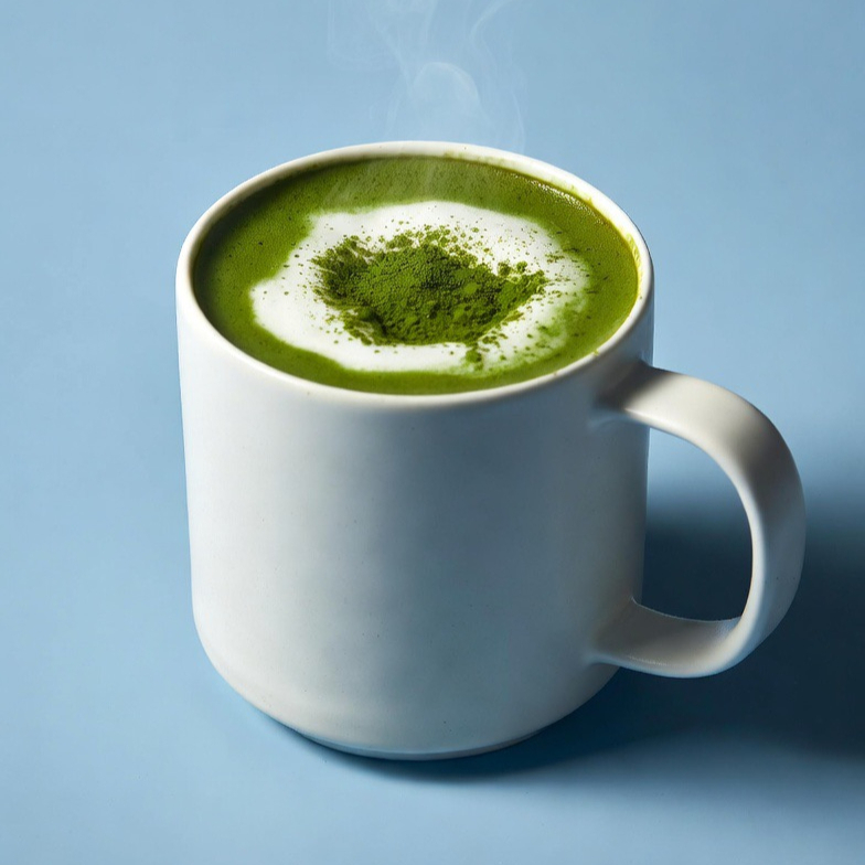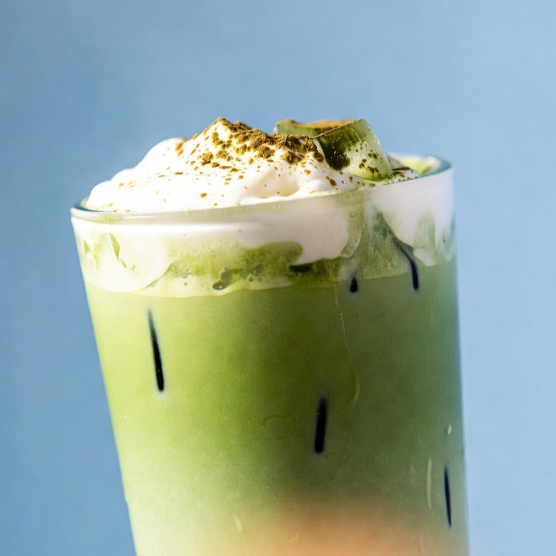 Rico matcha ceremonial con un toque de jarabe de vainilla .leche y hielos