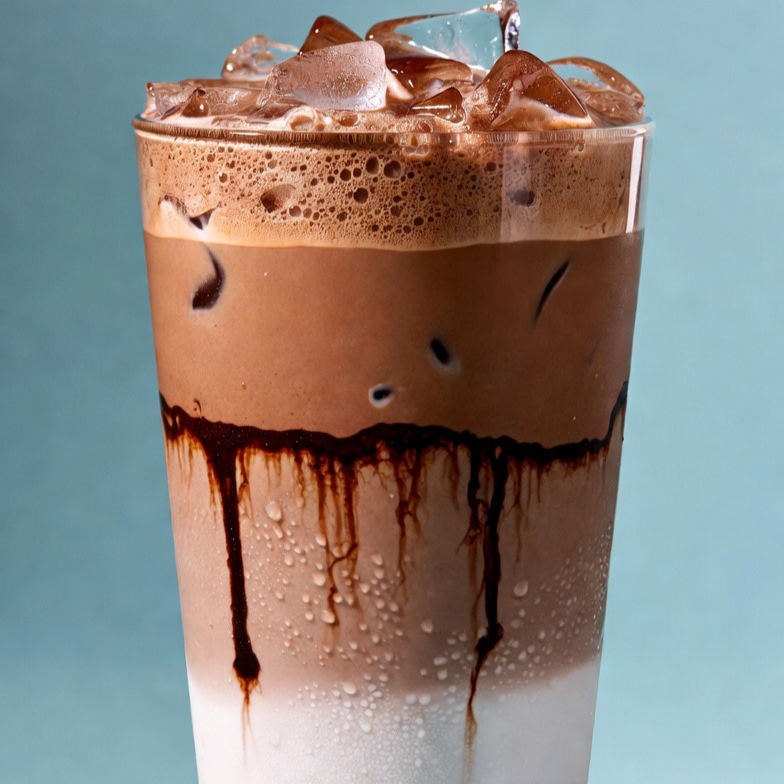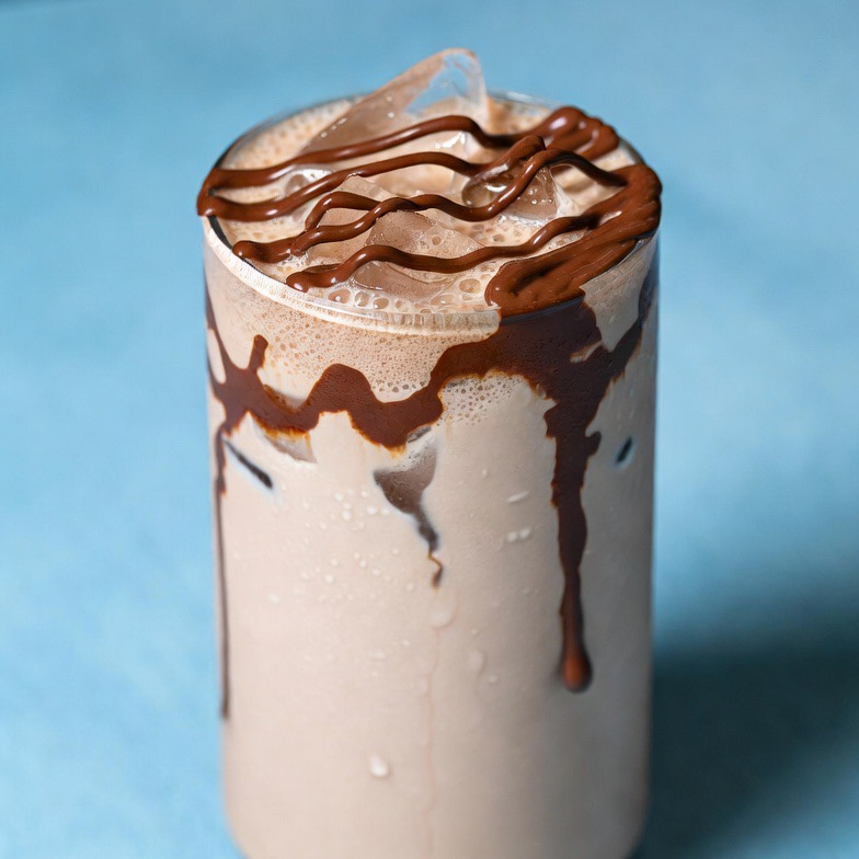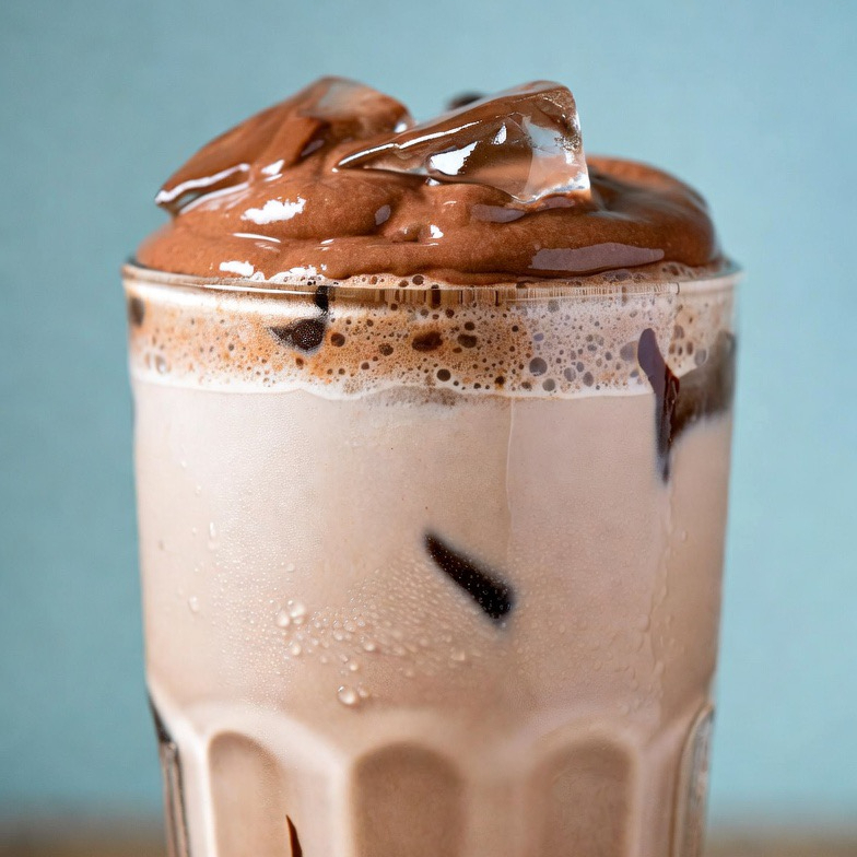 Chocolate semiamargo, espresso, hielos, leche y rica espuma con cocoa
