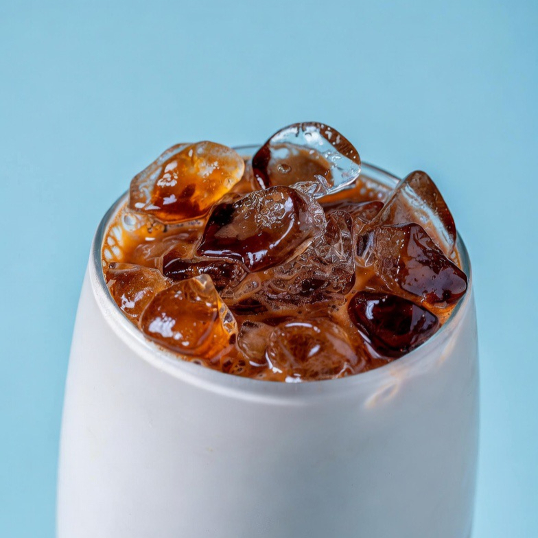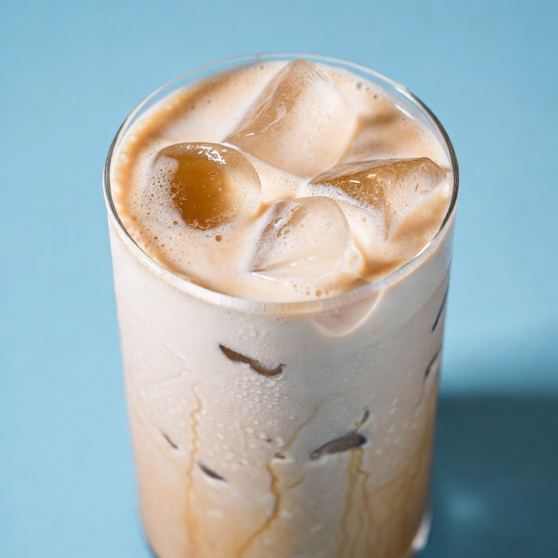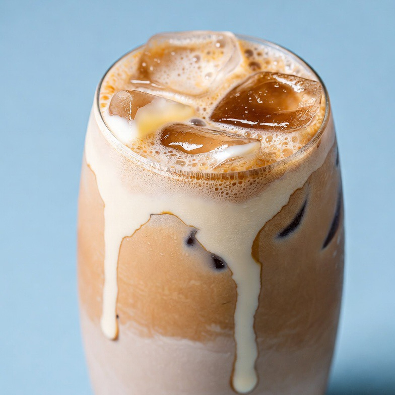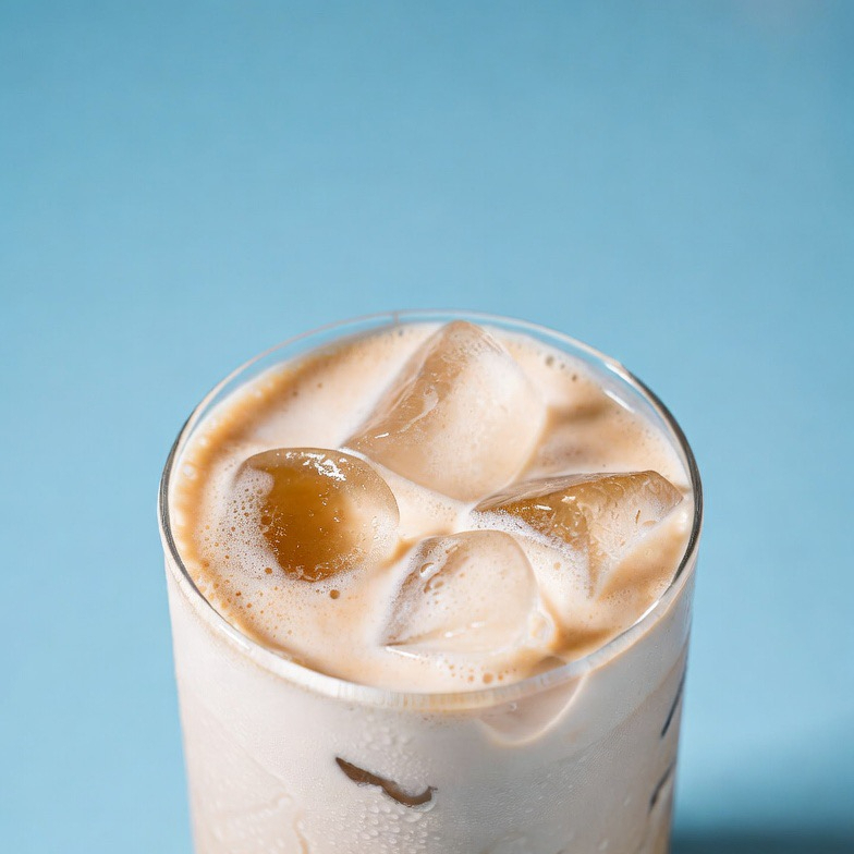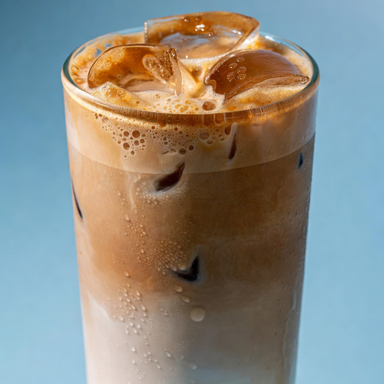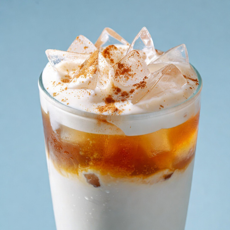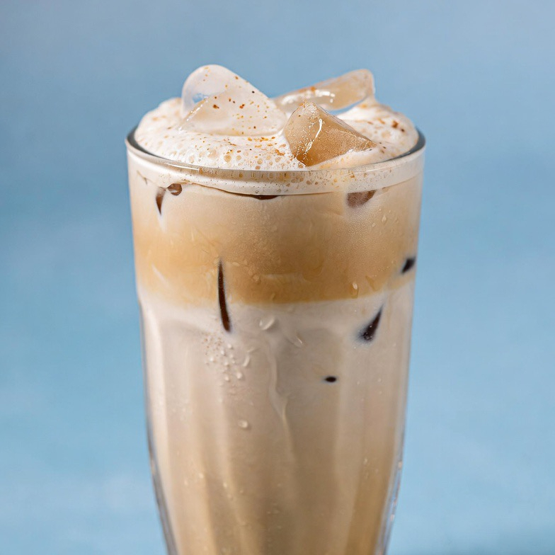 Espresso, concentrado de horchata, hielos y leche, con un toque de canela, delicioso para un atardecer
