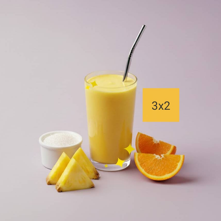 3 Batiholísticos de Agua + Jugo de naranja + Piña + Coco rallado (500 ml c/u) a precio de 2.