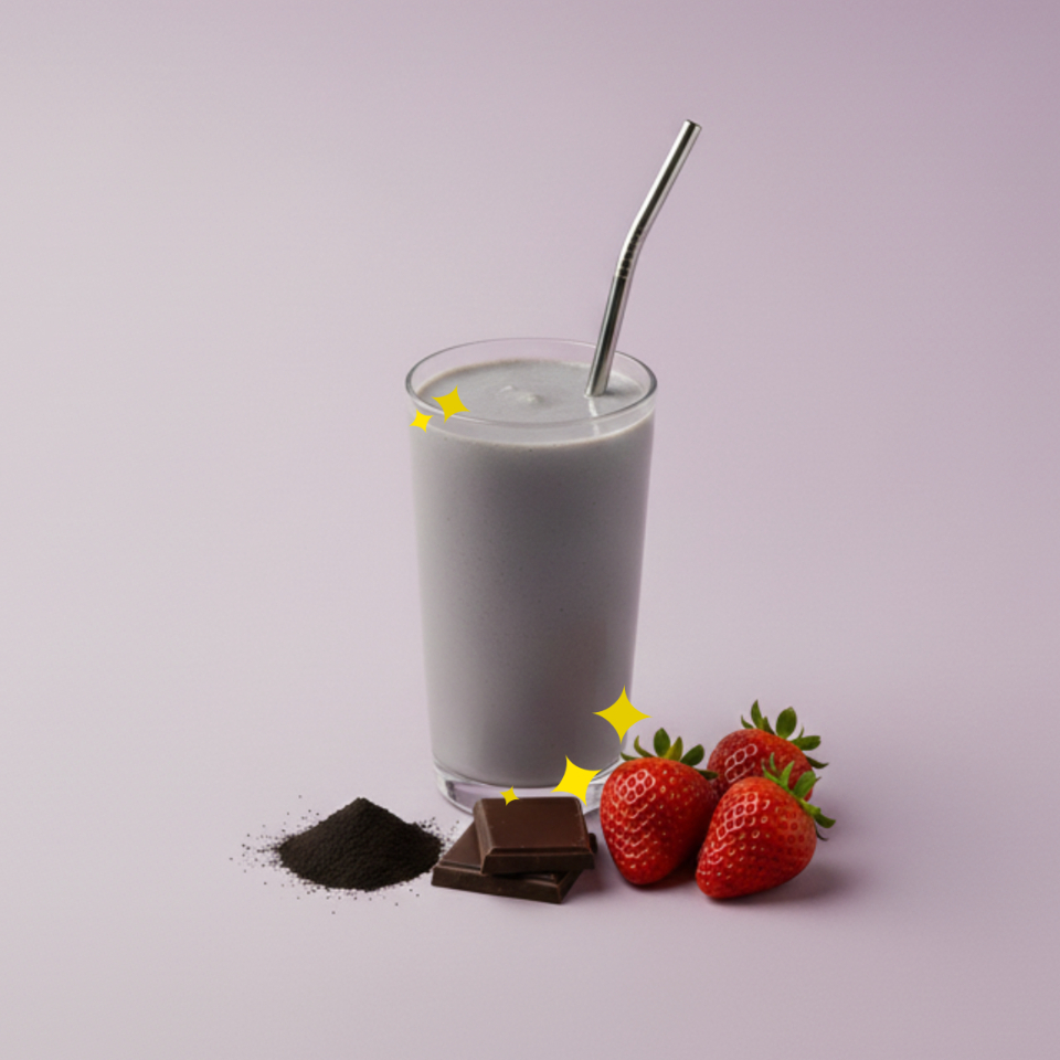 Leche + Fresa + Cocoa + Carbón activado (500 ml)