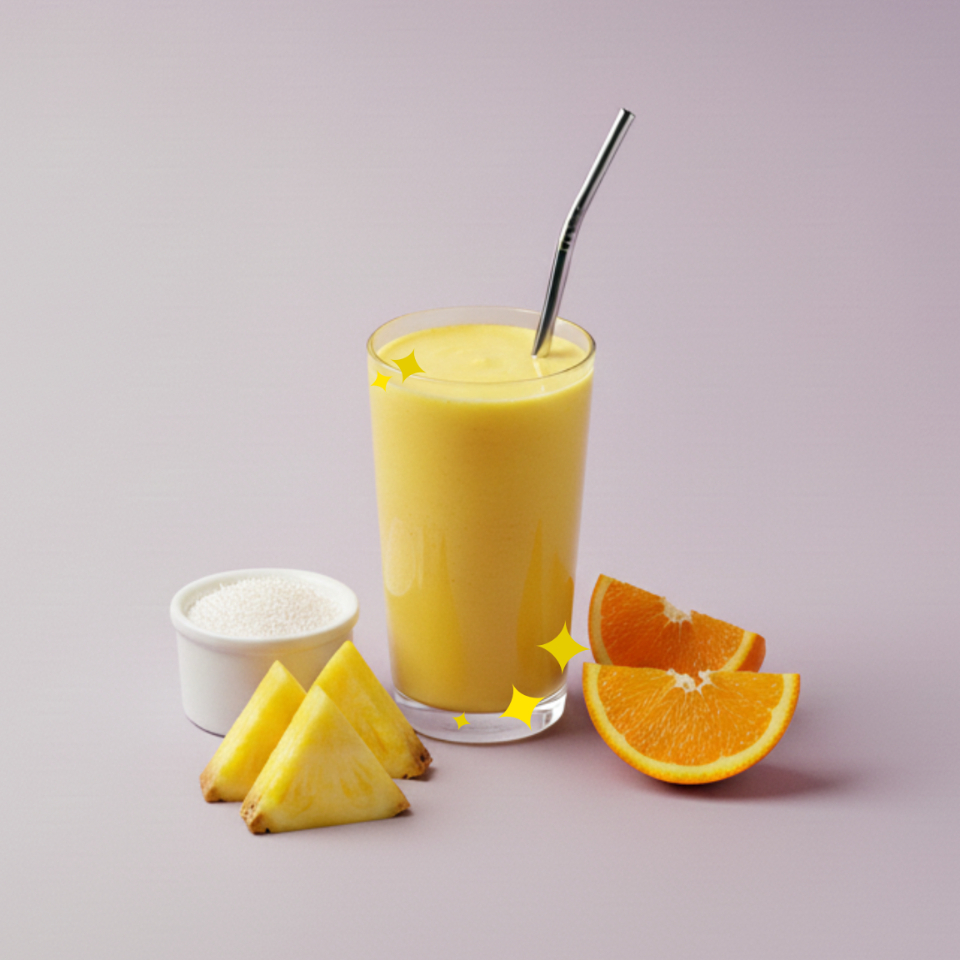 Agua + Jugo de naranja + Piña + Coco rallado (500 ml)