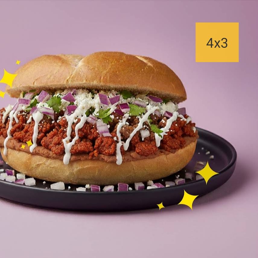 4 Tortas con frijoles refritos y chilaquiles crujientes salteados en alguna de nuestras mágicas salsas a precio de 3.