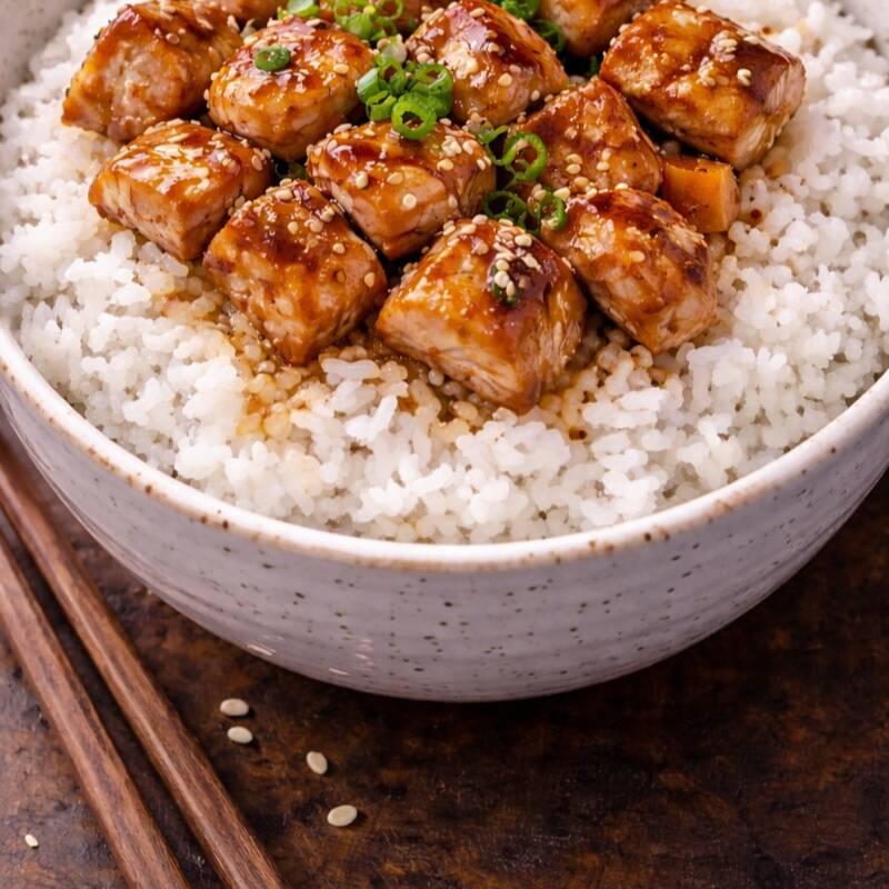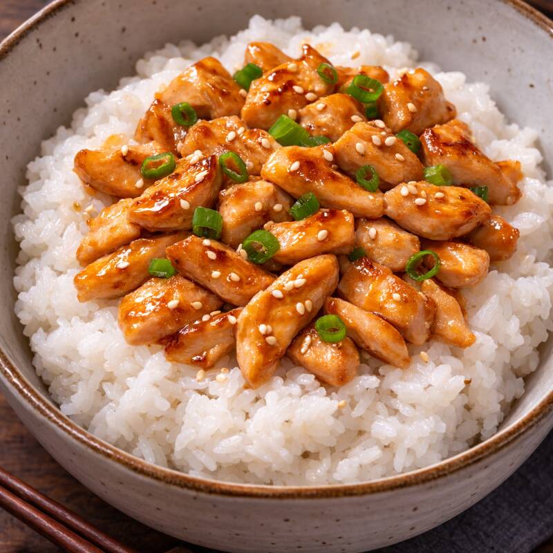 Arroz Blanco al vapor estilo japonés con pollo