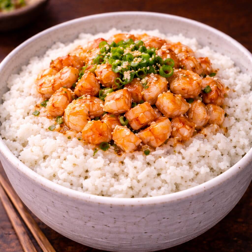 Arroz Blanco al vapor estilo japonés con camarones