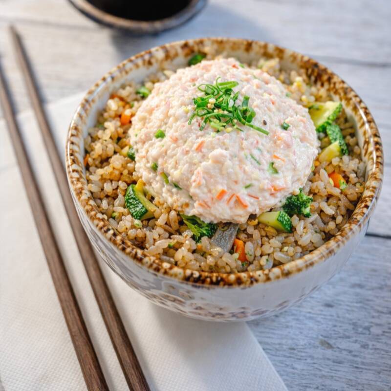 Arroz Yakimeshi con salmón