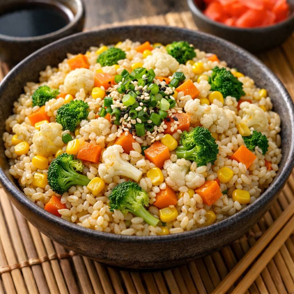 Arroz Yakimeshi ala plancha estilo japonés con verduras