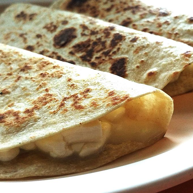 Tortilla de harina con queso gratinado y el guiso de tu preferencia