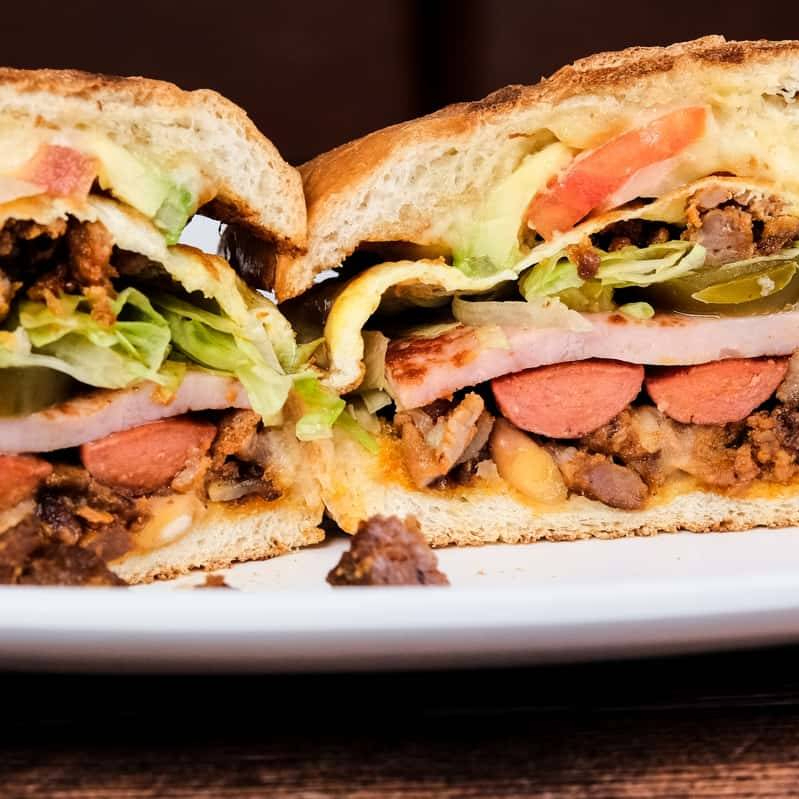 Carne de res, chorizo, jamón, tocino, queso amarillo, salchicha, champiñon,
