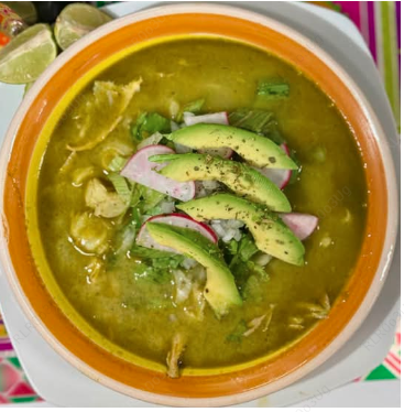 Un clásico con un giro delicioso, preparado con maíz cacahuazintle, carne tierna de pollo y un caldo lleno de sabor gracias a su mezcla de chiles verdes y hierbas frescas que le dan un color vibrante y único, se sirve acompañado de lechuga, rábanos, cebolla, aguacate, limón y tostadas, creando una combinación que conquista desde la primera cucharada.