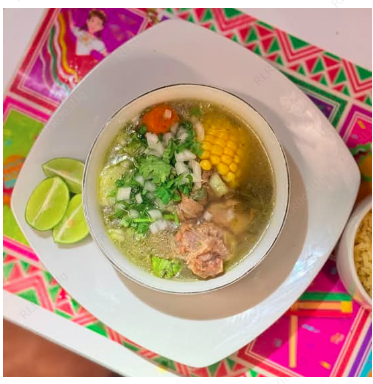 Un reconfortante caldo claro elaborado con pollo cocido lentamente junto con verduras frescas de temporada, zanahoria, calabaza, papa y elote, que liberan su dulzura natural en el fondo.