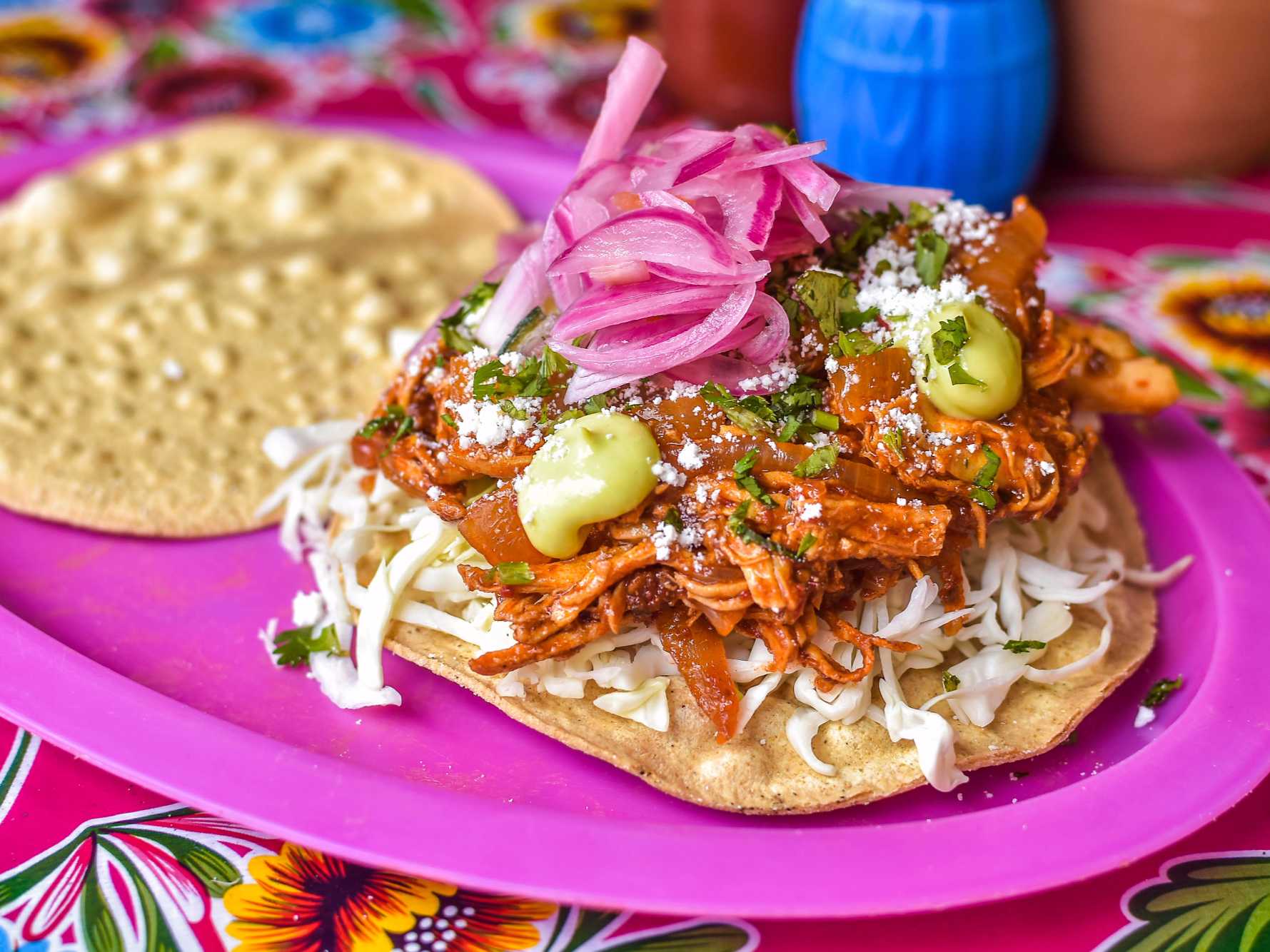 Orden de de 2 piezas, incluyen cueritos, encurtidos, verdura, salsa y tostadas.