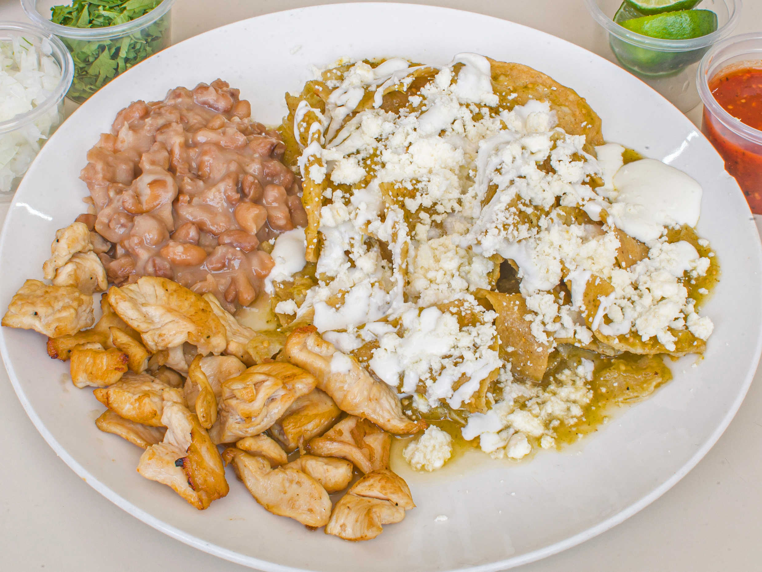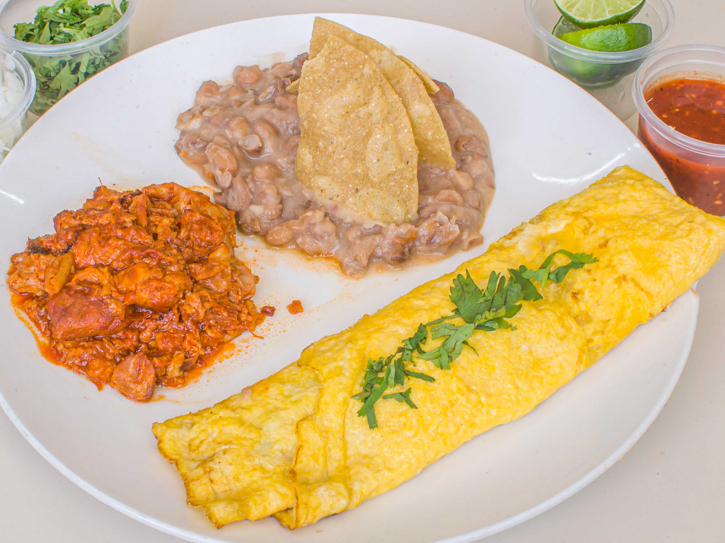 Acompañado de ricos totopos tortillas de harina y salsa pico de gallo.