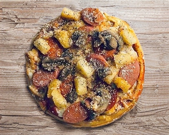 Delicioso Baguette de 30 centímetros, Salchicha, Jamón, piña, Queso Manchego, lechuga, jitomate, cebolla y aderezos.
