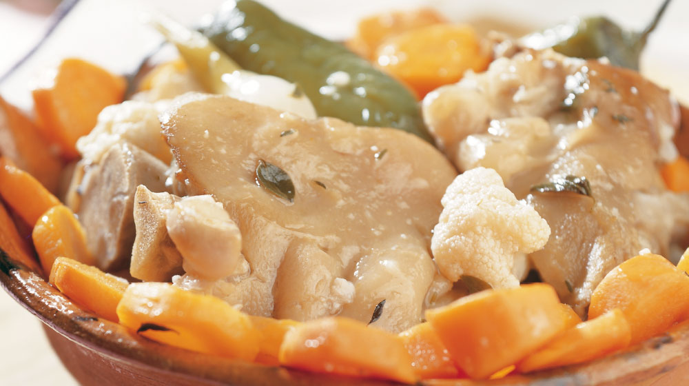 Cueritos papa, zanahoria, lomo, jamon, aguacate, queso añejo, lechiga jitomate cebolla y crema