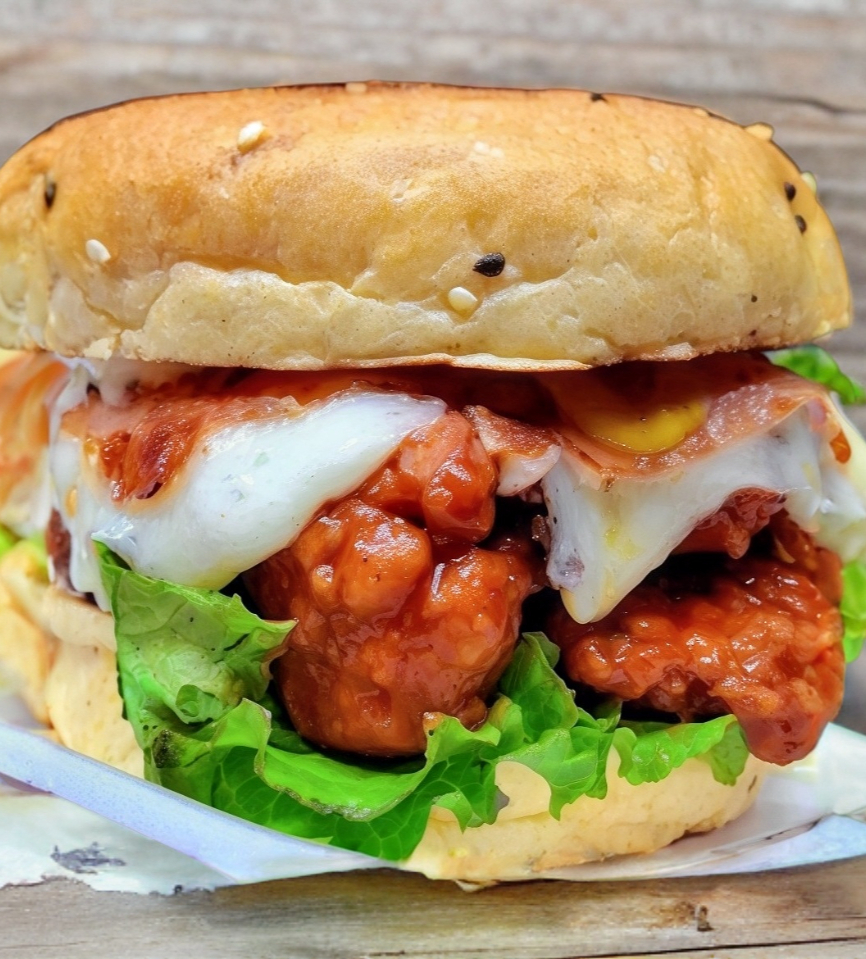 Boneless de pollo de calidad bañados en salsa de tu elección , Pan artesanal, queso amarillo, queso asadero. jamon, lechuga italiana, jitomate y aderezos
