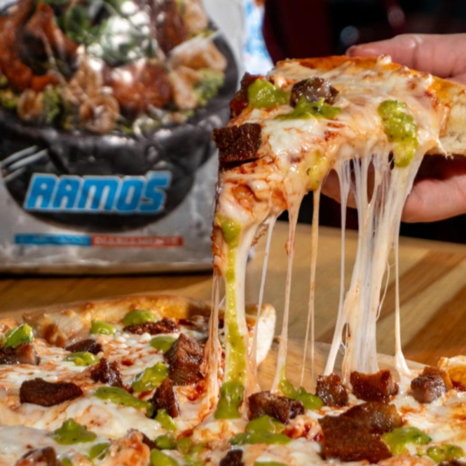 Crujiente, poderosa y con sabor del norte: chicharrón de cerdo de la Ramos sobre queso derretido y masa dorada 💥